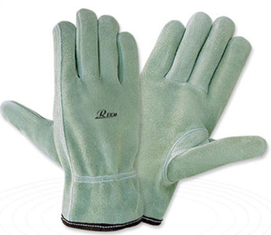 UNLINED CHROME COLOUR COW SPLIT LEATHER DRIVER GLOVE, KEYSTONE THUMB, SHIRRED ELASTIC ON WRIST, COTTON HEMMING. SIZES S, M, L, XL, XXL.