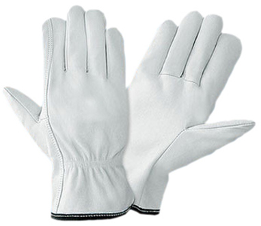 UNLINED CHROME COLOUR COW SPLIT LEATHER DRIVER GLOVE, KEYSTONE THUMB, SHIRRED ELASTIC ON WRIST, COTTON HEMMING. SIZES S, M, L, XL, XXL.