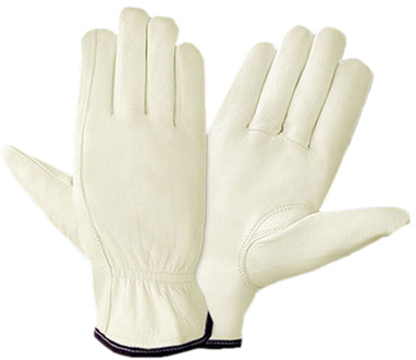 UNLINED CHROME COLOUR COW SPLIT LEATHER DRIVER GLOVE, KEYSTONE THUMB, SHIRRED ELASTIC ON WRIST, COTTON HEMMING. SIZES S, M, L, XL, XXL.